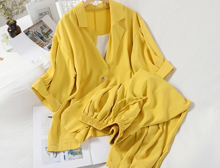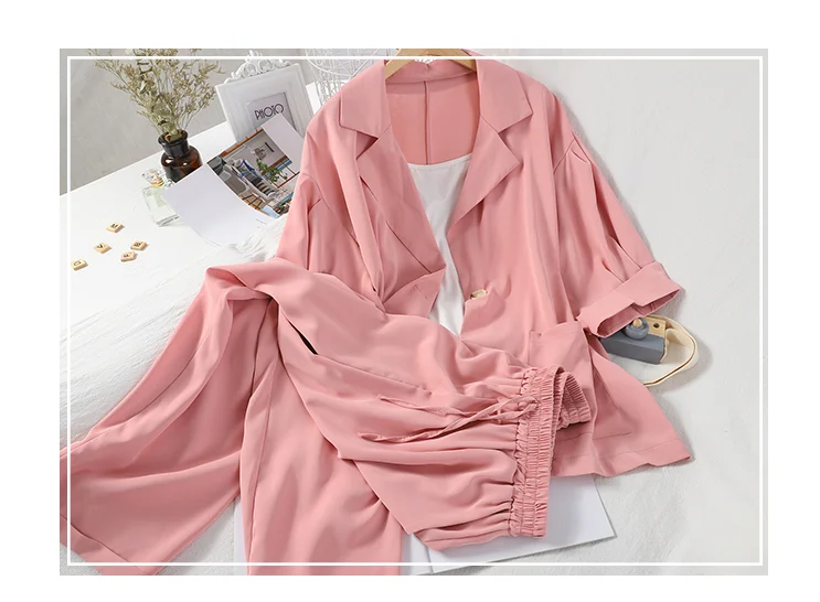 Be the first to review “Sexy White Strap Casual Jacket Blazer Lace Up Wide Leg Pants Three Piece Elegant Women’s Pants Set Summer Outfits”