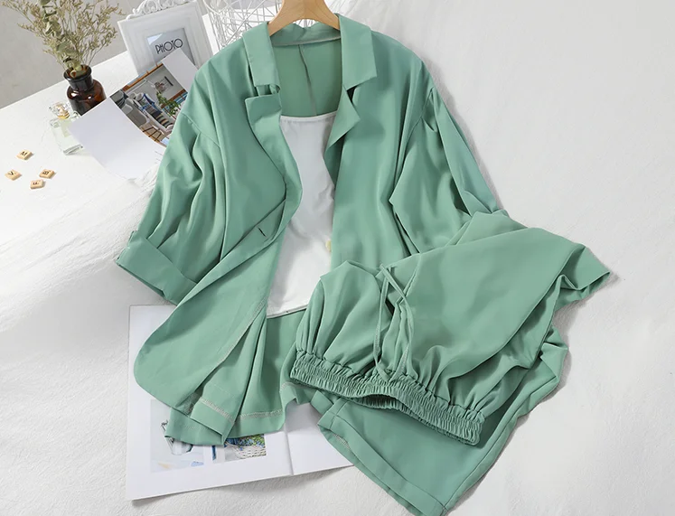 Sexy White Strap Casual Jacket Blazer Lace Up Wide Leg Pants Three Piece Elegant Women’s Pants Set Summer Outfits